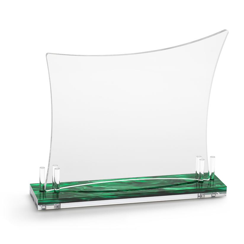 Glass plaque holder that celebrates stories of success, passion, and dedication. Customized with UV printing or laser engraving, every detail becomes a tangible symbol of value. The transparent base enhances the purity of the glass, giving the award elegance and character. Light passes through the glass, creating depth and reflections that turn the recognition into a precious keepsake. Ideal for corporate events, sports awards, meetings, and celebrations, it expresses appreciation and pride for those who stand out through dedication. Presented in an elegant gift box, it adds a refined touch to every presentation.