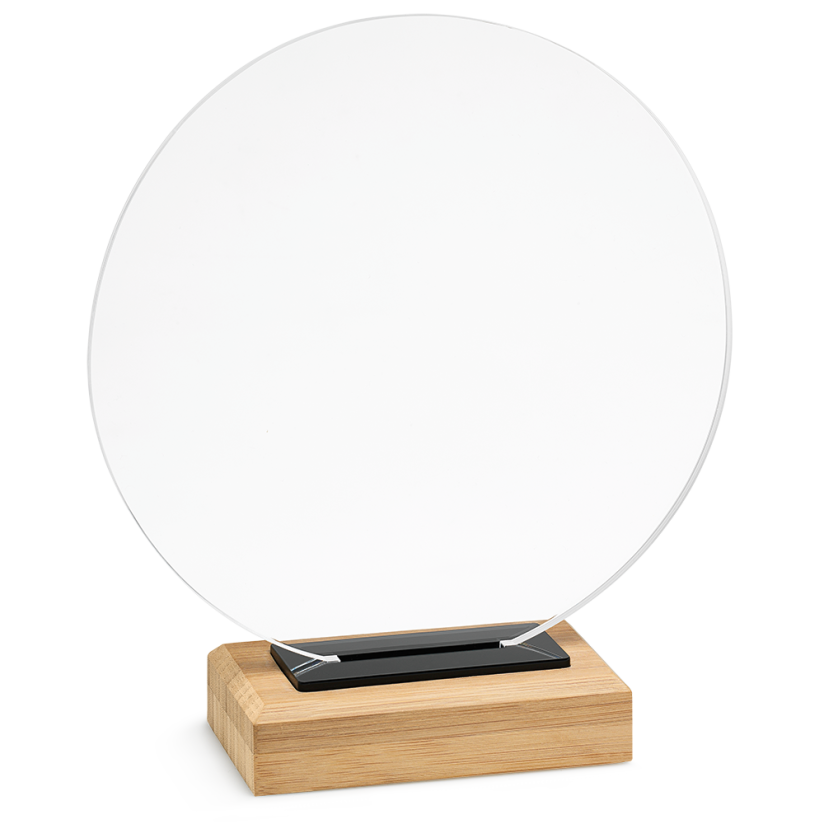 Metacrilato e bamboo: un contrasto visivo originale e ricercato. Trofei versatili per chi cerca un riconoscimento dallo stile essenziale ma d’impatto.