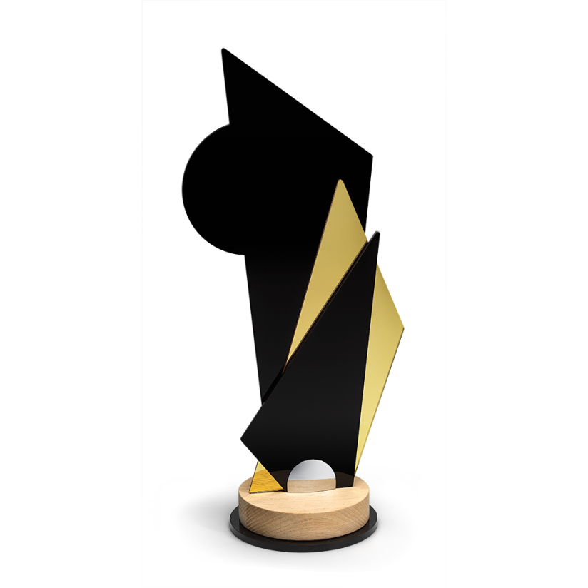 Forme dinamiche, dettagli a contrasto e targhetta personalizzabile: i nostri tris con particolari specchiati sono pensati per lasciare il segno in ogni premiazione.
